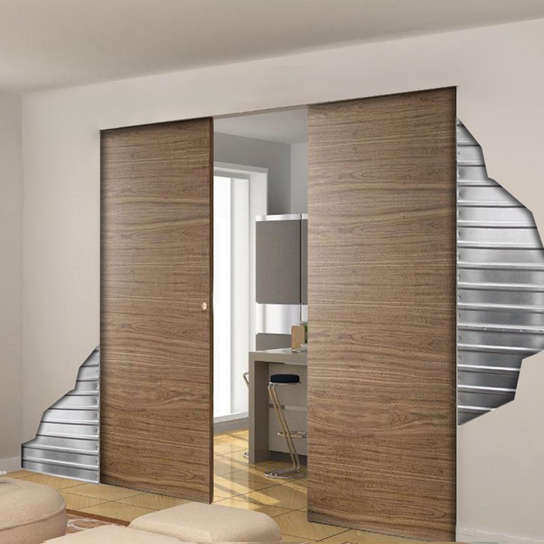 Para instalar un casoneto, debes planificar con anticipación y construir una pared enfoscada (de ladrillos) o de placa de yeso laminado lo suficientemente ancha como para que entre la puerta. Una puerta interna estándar tiene alrededor de 35 mm de ancho, por lo que una pared de 100 mm de ancho es más que suficiente para alojar una puerta empotrada.