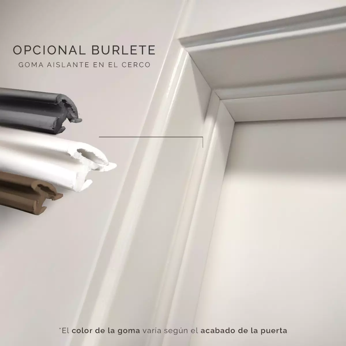1 • Menor peso: Al tener una alma de aglomerado, la puerta es más ligera que una puerta maciza de madera dura, lo que facilita su manejo y colocación.