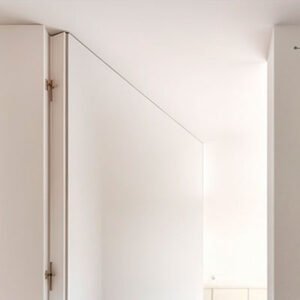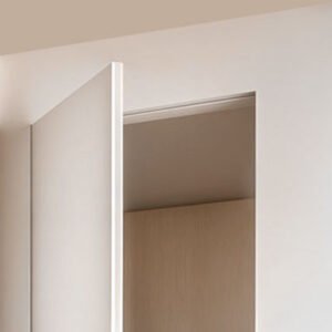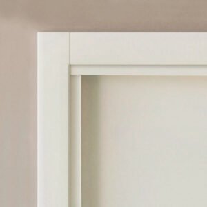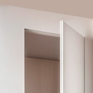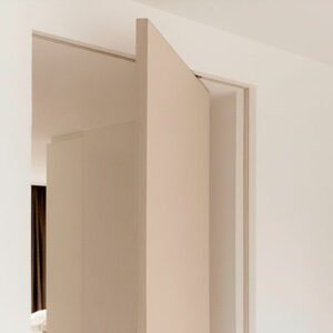 Enrasada a pared: sin tapetas, al ras del muro, lo que crea el efecto “puerta invisible” y una continuidad visual total en la pared.